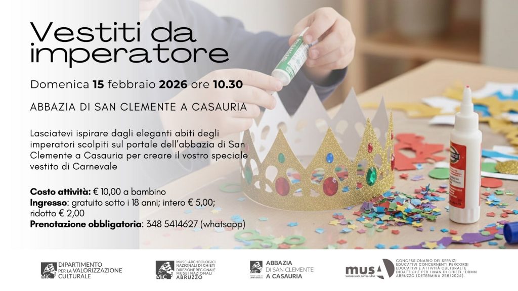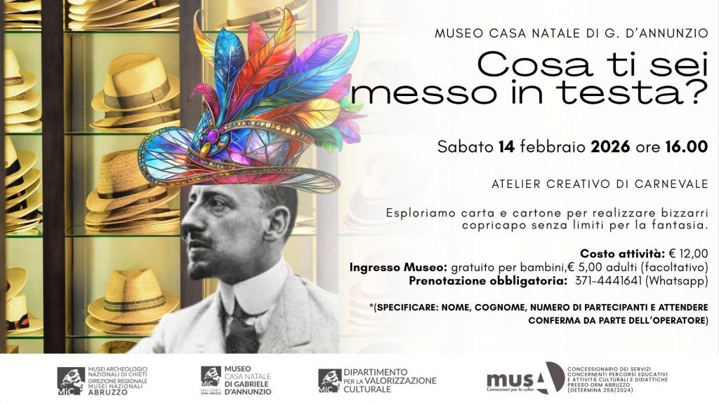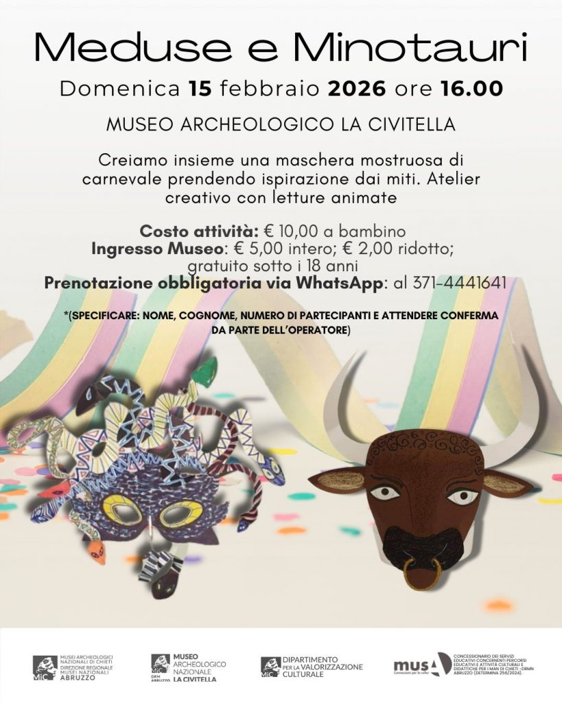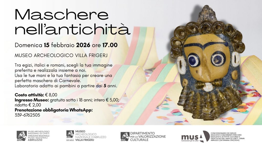 Nel weekend di sabato 14 e domenica 15 febbraio 2026 i musei e i luoghi della cultura si animano con “Carnevale al Museo”, un ricco programma di laboratori creativi pensati per bambini dai 5 anni in su e famiglie, tra maschere, miti, copricapi bizzarri e personaggi dell’antichità.