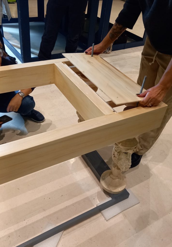 Per l’occasione i Musei Archeologici Nazionali di Chieti – Direzione regionale Musei nazionali Abruzzo hanno sottoscritto un Protocollo di Intesa con l’Istituto Centrale del Restauro per la consulenza generale sull’intervento conservativo, per l’uso degli spazi e la realizzazione delle indagini diagnostiche. Nell’ambito del protocollo è stato individuato un Ufficio di Direzione dei lavori (Simona Pannuzi, ICR; Valentina Belfiore, MAN-CH/DRMN Abruzzo), e una Direzione operativa (Stefano Ferrari; Antonella Di Giovanni; Francesca Angelo; Davide Fodaro, ICR). Dell’intervento di restauro è stata incaricata l’RTI Fabrica Conservazione Restauro s.c.p.l. (Alex Sarra, Monica Pastorelli, Emiliano Catalli), che ha fattivamente operato per la restituzione del letto alla sua forma originaria.