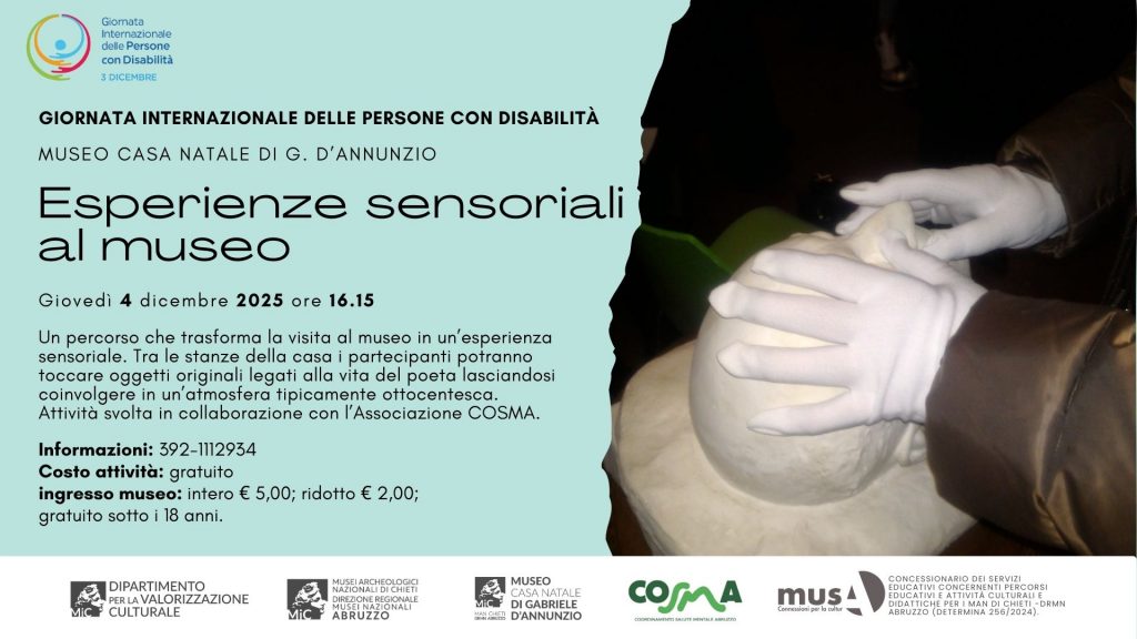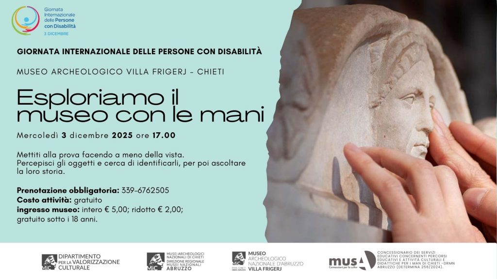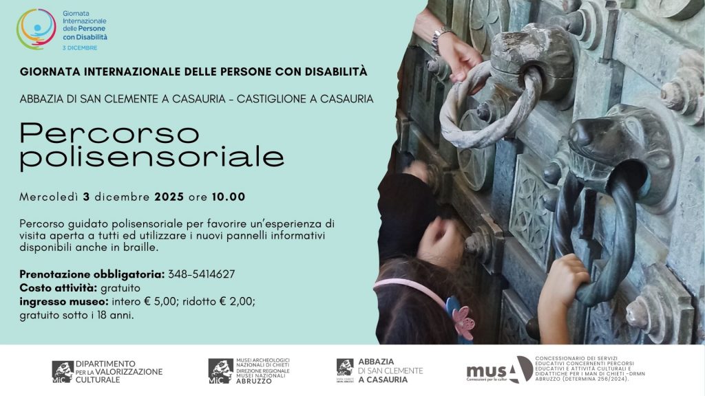 Il calendario degli appuntamenti e’ pubblicato sul sito ufficiale del Ministero della cultura al seguente link: 3/12/2025 GIORNATA INTERNAZIONALE DELLE PERSONE CON DISABILITÀ – Ministero della cultura