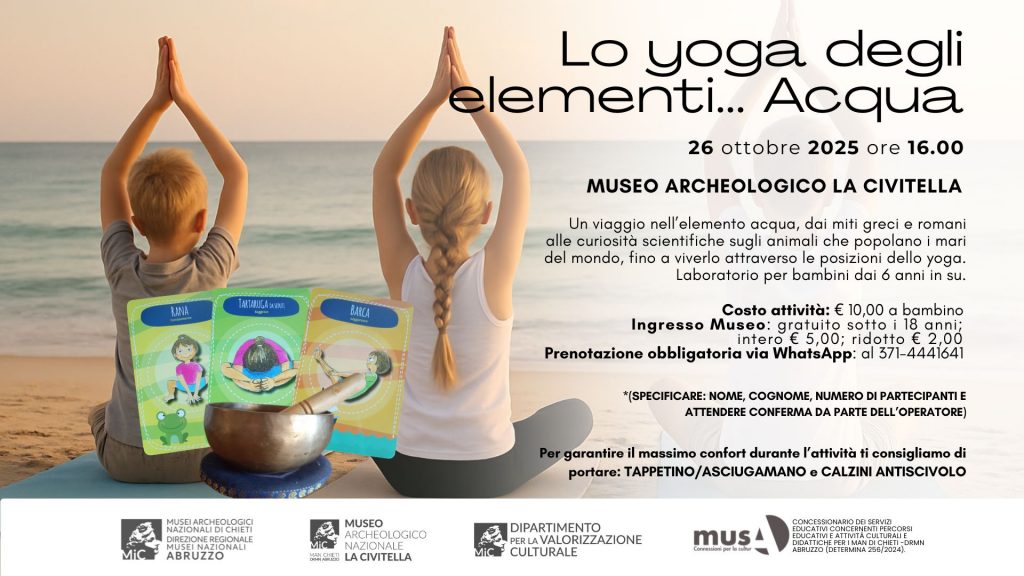 Prosegue il programma di musA – Connessioni per la Cultura nei Luoghi della Cultura, il progetto promosso dalla “Musei Archeologici Nazionali di Chieti – Direzione regionale Musei Nazionali Abruzzo” per favorire la partecipazione attiva e la scoperta del patrimonio culturale attraverso esperienze educative e creative dedicate a bambini, famiglie e visitatori di tutte le età.