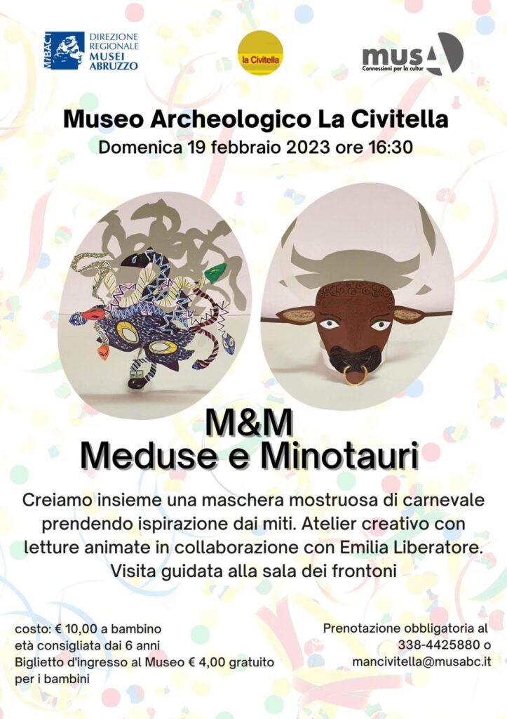 Museo archeologico di Chieti La Civitella (per info e prenotazioni contattare il numero 3384425880 o scrivere all’indirizzo mail mancivitella@musabc.it)